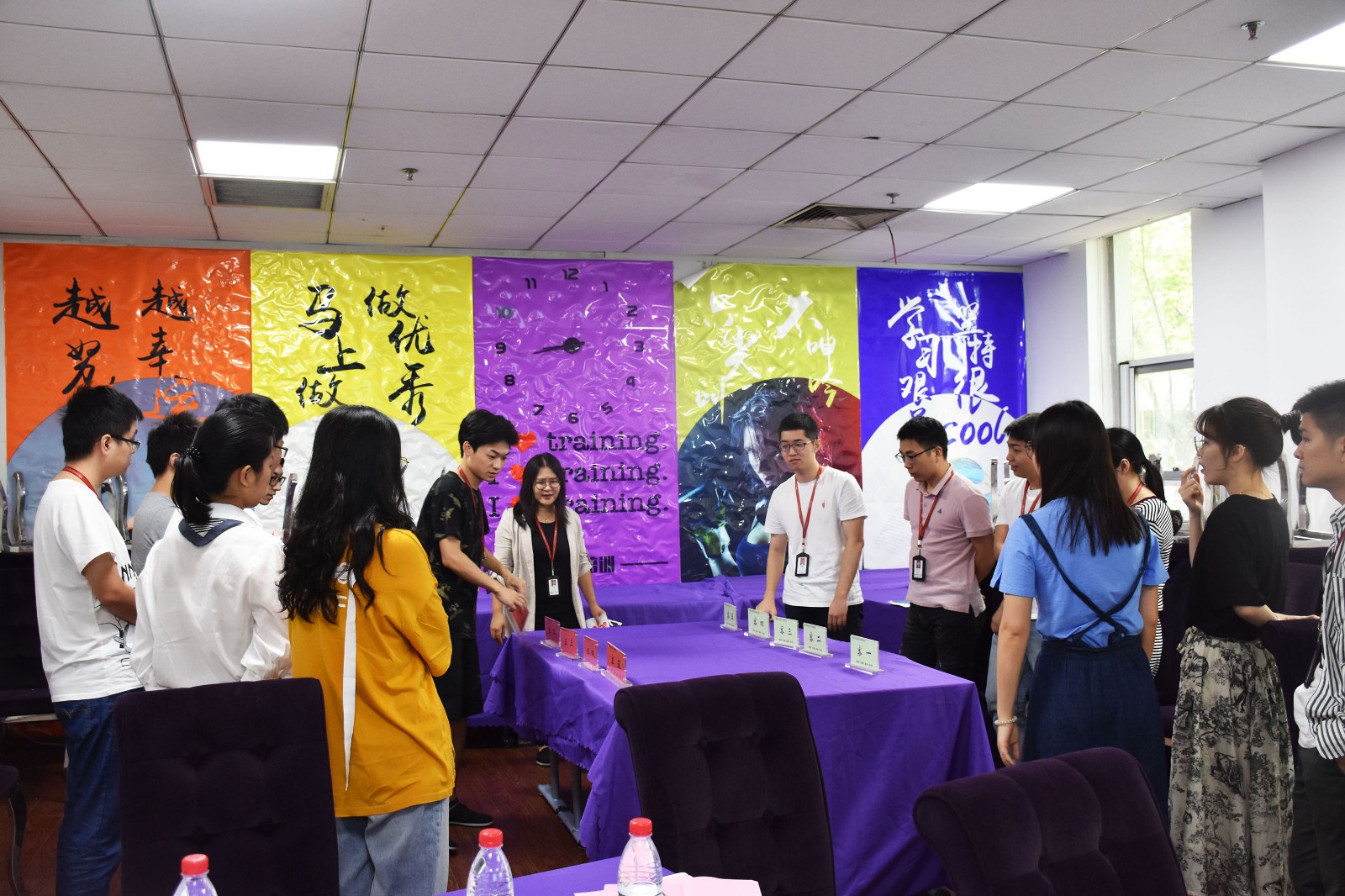 隨后,在隊(duì)長的帶領(lǐng)下四個(gè)小組互喊了口號(hào),向其他小組展現(xiàn)了自己的氣勢。在接下里一天半的培訓(xùn)中,學(xué)員們通過回答問題為自己的小組集贊,四個(gè)小組都為了隊(duì)伍榮譽(yù)爭先搶答,氣氛十分活躍。第一天,“旺仔隊(duì)”僅僅得到三個(gè)贊,暫時(shí)落后于其他隊(duì)伍,但在第二天的商務(wù)禮儀課程中,他們卯足了勁追回了比分。在18日下午所有培訓(xùn)課程結(jié)束后,四隊(duì)進(jìn)行了入職筆試考試,在比拼的同時(shí)檢驗(yàn)自己課程掌握情況。最終“旺仔隊(duì)”以98.8分的綜合分實(shí)現(xiàn)逆襲,“佛系青年隊(duì)”最終獲得92.15分位居第二,“農(nóng)夫山泉隊(duì)”與“3+1隊(duì)”分別以85.35分與78.15分位列第三、第四。學(xué)員們根據(jù)排名的先后,依次領(lǐng)取了自己心儀的入職紀(jì)念品。