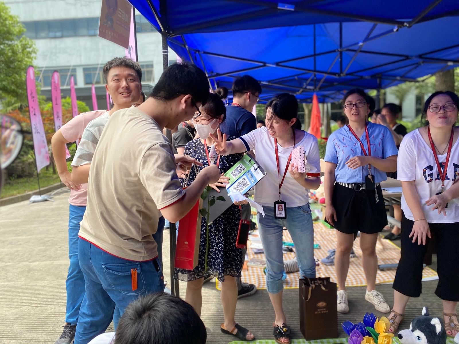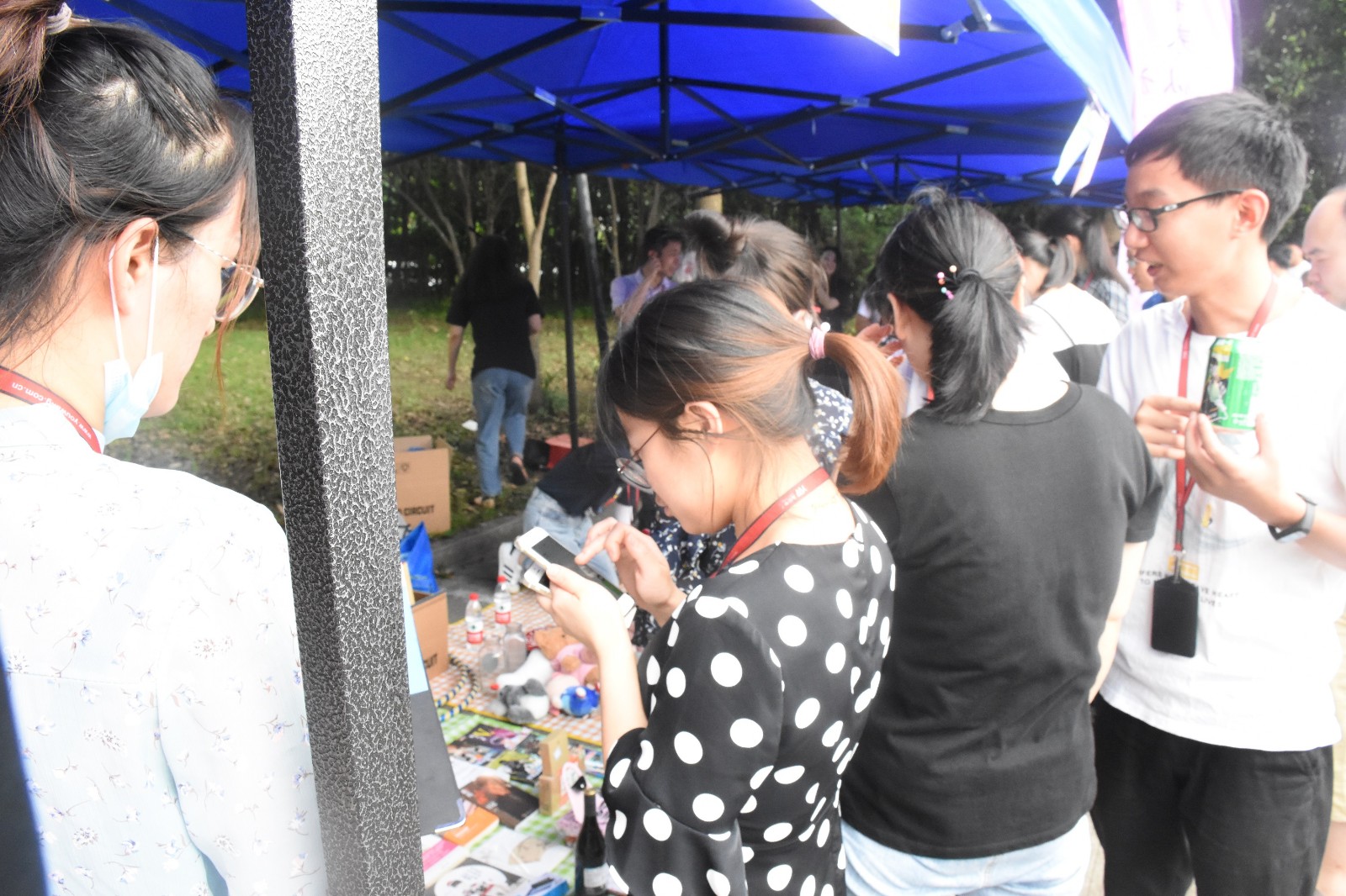 最有創(chuàng)意,當(dāng)屬攤位一生產(chǎn)運(yùn)營(yíng)組。他們別出心裁,利用10元一次套圈的方式擺攤賣(mài)貨,吸引了大部分顧客的注意。攤位二是研發(fā)和器件的小伙伴,他們的商品走的是“高端、大氣、上檔次”的技術(shù)路線,售賣(mài)單反相機(jī)、茶葉等等,以精取勝。攤位三是技術(shù)應(yīng)用、技術(shù)質(zhì)量和設(shè)備的小伙伴,商品都親民、實(shí)用,如圖書(shū)、小風(fēng)扇等很受歡迎。有道是“上得廳堂下得廚房”,四號(hào)攤位是人力和財(cái)務(wù),平時(shí)風(fēng)風(fēng)火火的女漢子們走的是“文藝范兒”路線,售賣(mài)月季和玫瑰,吸引了很多男同事?lián)屬?gòu)。攤位五由IT和銷(xiāo)售合作,從蔬菜瓜果到日用品種類(lèi)豐富,以量取勝。當(dāng)然現(xiàn)場(chǎng)最火爆的當(dāng)屬是攤位六,他們是瑪斯特和制造的寶寶們,澳洲紅酒配羊肉串,高冷冰桶混搭火熱燒烤,上演了西餐廳與美食街的冰與火之歌,他們以6425元的銷(xiāo)售額斬獲了攤位冠軍?;顒?dòng)中,許多同事都用滿意的價(jià)格買(mǎi)到了心儀的商品,各個(gè)攤位總銷(xiāo)售額也遠(yuǎn)超預(yù)期。
