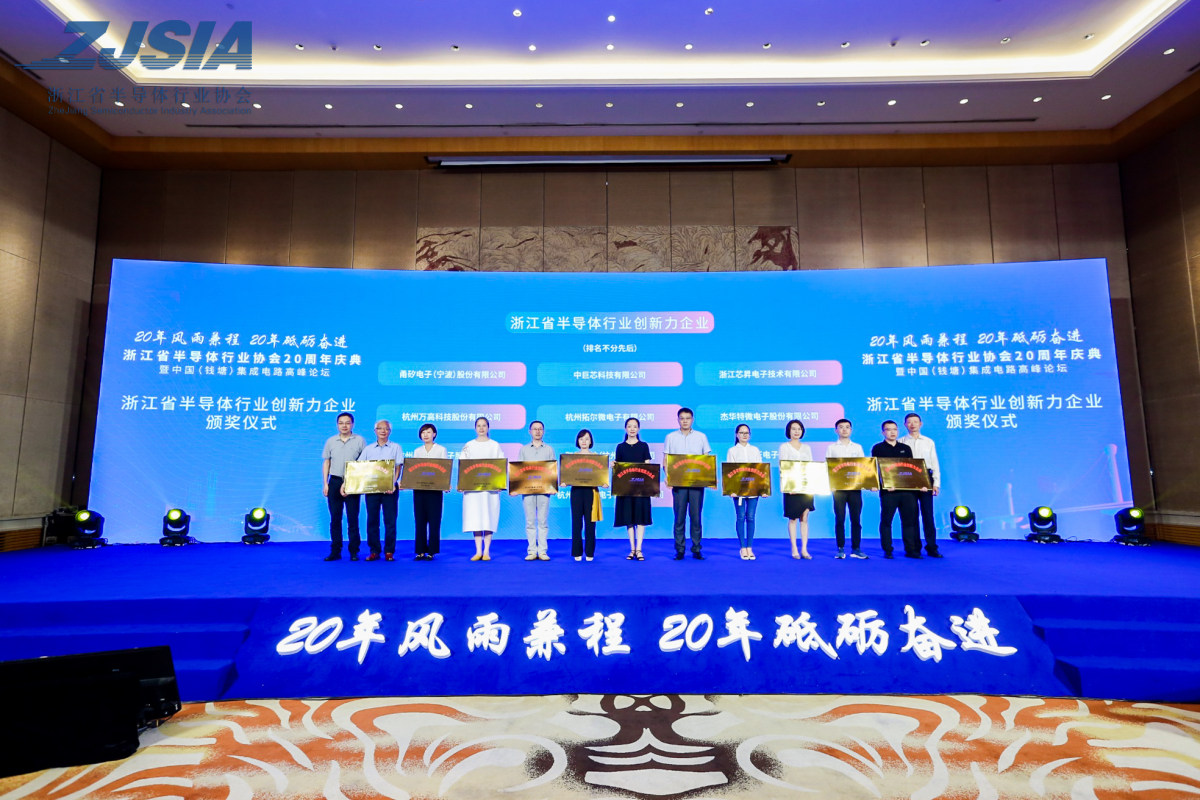 近日,我公司被評(píng)選為首批“浙江省半導(dǎo)體行業(yè)最具創(chuàng)新力企業(yè)”。在2021年6月18日下午舉行的浙江省半導(dǎo)體行業(yè)協(xié)會(huì)20周年慶典中,作為協(xié)會(huì)的理事單位,我公司質(zhì)量副總楊軍出席并代表公司領(lǐng)獎(jiǎng)。