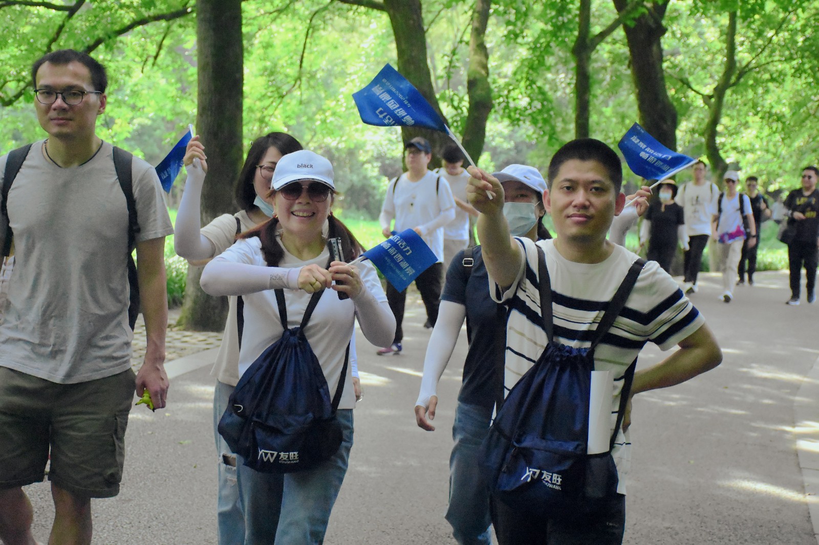 上午9:20,在熱身之后,活動正式開始。本次活動實行小組競賽制,5人一隊,男女搭配,路線全長共計4.5公里,途中可暢游九溪十八澗、九溪煙樹等景點。一路上綠蔭成蓋,溪水潺潺,水波泛出秀色,山上景物明凈。茂密樹林間亭院錯落,可謂“樓閣高低樹淺深,山光水色暝暝沈沈”。行至九溪十八澗,石子路高低崎嶇,行走不便,每一個小隊都團結友愛,在隊友需要幫助的時候伸出援手。全程比賽,各個小隊都奮勇爭先,也不忘相互鼓勵、相互幫助,充分展現了友旺人合作擔當的企業(yè)精神。