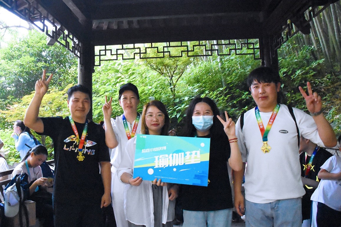 上午10:20,參與毅行的全體員工均到達終點——小龍井亭。其中第六小隊和第八小隊兩隊實力不相上下,并列第一,曲總為大家頒發(fā)了獎牌及獎品,獲勝小隊成員各獲得體脂稱一臺,其余完賽小隊每人獲得瑜伽墊一張。工作人員準備了清甜豐盛水果和零食,大家在歡聲笑語中圓滿完成了本次毅行活動。