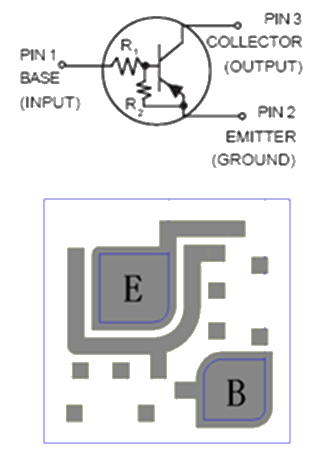 ★ Y7037NA是利用硅外延工藝生產(chǎn)的PNP型帶偏置電阻三極管芯片