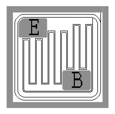 芯片背極為集電極,基極與發(fā)射極的鍵合點(diǎn)位置見(jiàn)右圖