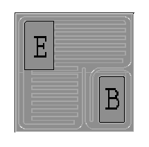 芯片背面為集電極,基極與發(fā)射極的鍵合點(diǎn)位置見(jiàn)右圖