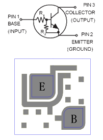 芯片背極為集電極,基極與發(fā)射極的鍵合點(diǎn)位置見右圖