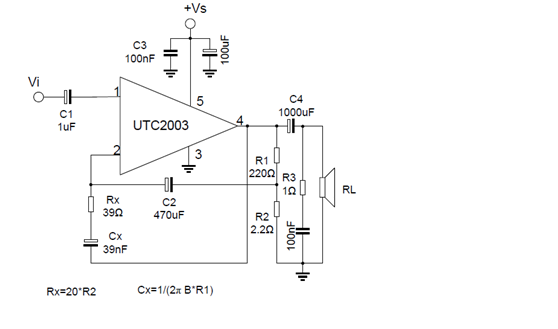 UTC2003具有非常低的外部組件數(shù)量,易于組裝、空間和節(jié)省成本。該IC提供了高輸出電流容量(高達(dá)3.5A),非常低的諧波和交叉失真,安全的操作,具有對(duì)所有引腳和接地之間的直流和AC短路保護(hù),過(guò)熱保護(hù),負(fù)載上電壓可沖至40V。